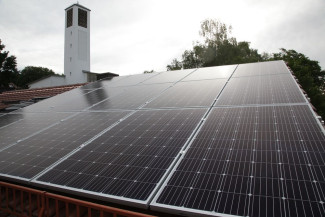 Und zu guter Letzt konnte auf dem benachbarten Pfarrhaus eine neue Photovoltaikanlage errichtet werden. Sie versorgt die Kirche, das Pfarramt und die Pfarrwohnung mit Strom. Es ist ein Energiespeicher mit eingebaut, der den erzeugten Strom der Anlage auch in den Abendstunden zur Verfügung stellen kann, wenn keine Sonne mehr scheint.